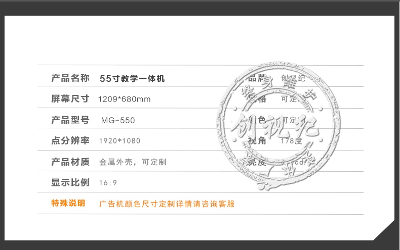 55寸網(wǎng)絡(luò )教學(xué)一體機/觸摸一體機/電子白板廣告機