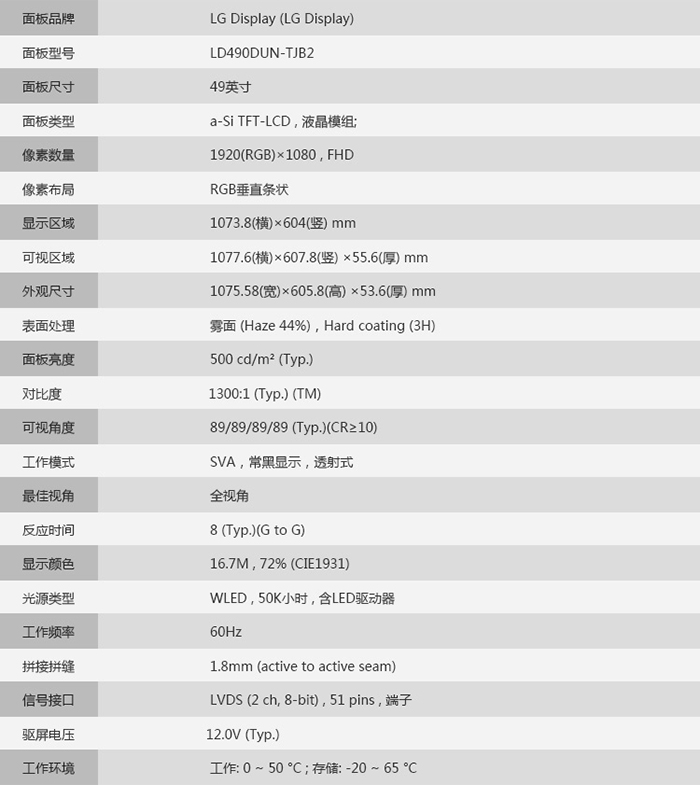 液晶屏尺寸        49 寸TFT真彩液晶屏