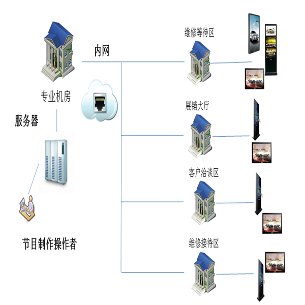 目前4S店基本都是通過產(chǎn)品宣傳折頁、易拉寶、櫥窗海報、燈箱等傳統(tǒng)的媒體進行被動信息宣傳,并且顯得零亂無序。創(chuàng)視紀出的電子海報機可以更加清晰、更加醒目、更加規(guī)范和更加有效地展示汽車產(chǎn)品在顧客面前。通過網(wǎng)絡可以可以遠程、即時發(fā)布廣告信息,使所有的顯示終端形成一個強大的信息發(fā)布平臺。