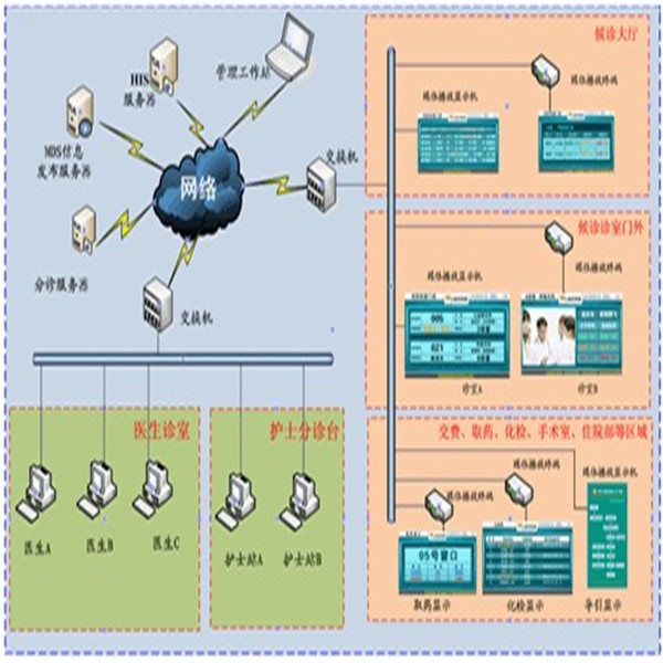 充分利用就醫(yī)者及其親屬等待休息時間,通過智能顯示設備進行醫(yī)院形象、產(chǎn)品廣告等宣傳,便于患者更加了解醫(yī)院、信任醫(yī)院;播放當天的氣象信息、感冒指數(shù)、時鐘等公益信息,豐富播放內容,提高收視關注度,體現(xiàn)醫(yī)院的人性化關懷。
