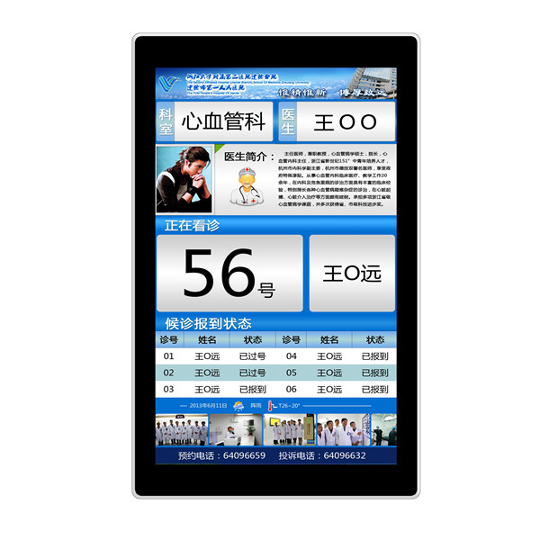 3、在每個掛號窗口配置一個中型或小型的壁掛式海報機,可用于顯示掛號收費信息、當日出診專家介紹、掛號排隊信息等;