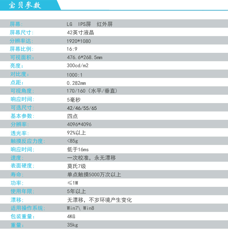 3、觸摸功能:配備全球最先進(jìn)的第六代全新紅外觸摸屏---流暢的觸摸體驗!