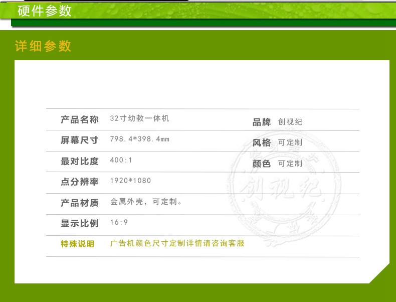產(chǎn)品名稱(chēng):32寸幼教一體機                  品牌: 創(chuàng )視紀