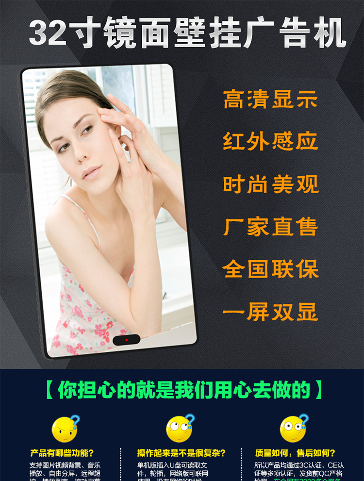 43寸壁掛式魔鏡廣告機(jī) 洗手間專(zhuān)用多媒體顯示屏
