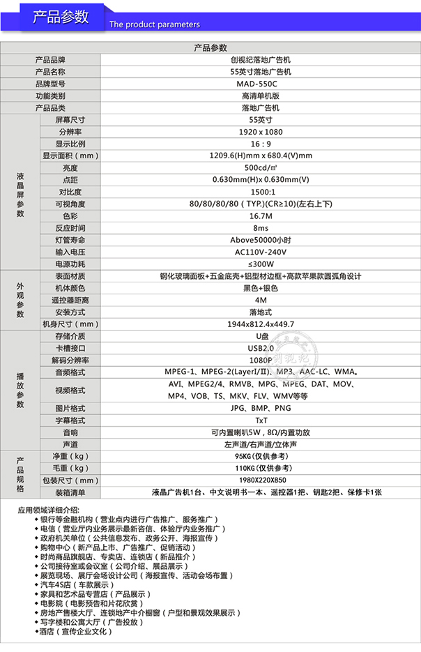 55英寸落地式廣告機 立式智能單機版插卡液晶顯示屏