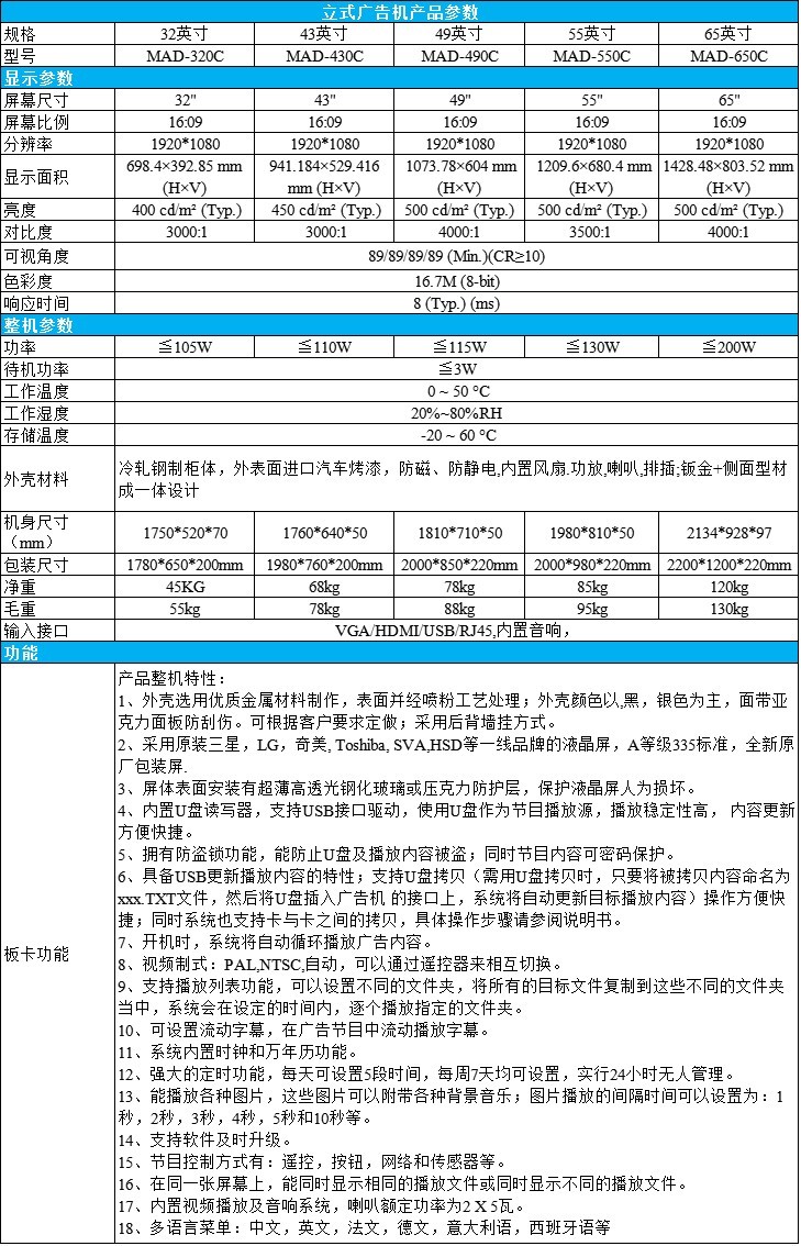 產(chǎn)品名稱(chēng):49/55/65落地式廣告機
