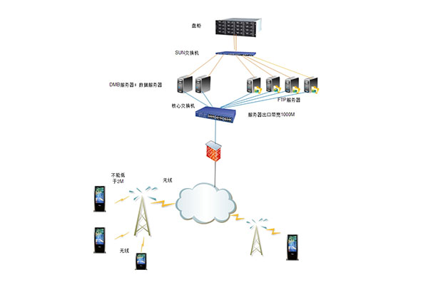 服務(wù)器群架設(shè)在總部網(wǎng)絡(luò)管理中心,采用先進(jìn)的B/S管理架構(gòu),對(duì)各種信息播放媒介進(jìn)行管理、控制、監(jiān)控及下發(fā)各種多媒體信息。