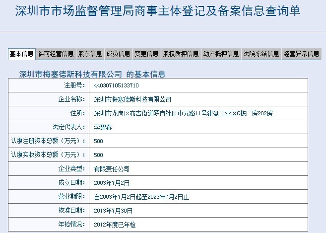 以上資訊已深圳市市場監(jiān)督局網(wǎng)站提供:http://app01.szaic.gov.cn/aiceqmis.webui/GeneralSearch.aspx