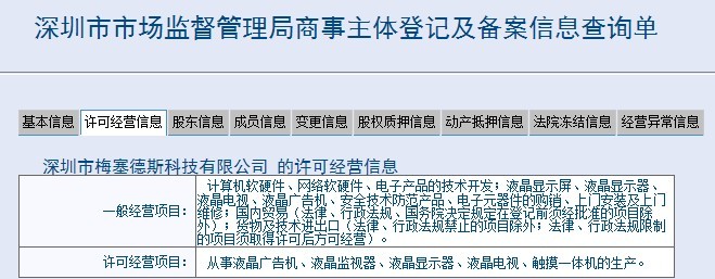 經(jīng)營范圍加入“許可經(jīng)營項(xiàng)目” 從事液晶廣告機(jī)、液晶監(jiān)視器、液晶顯示器、液晶電視、觸摸一體機(jī)的生產(chǎn)。