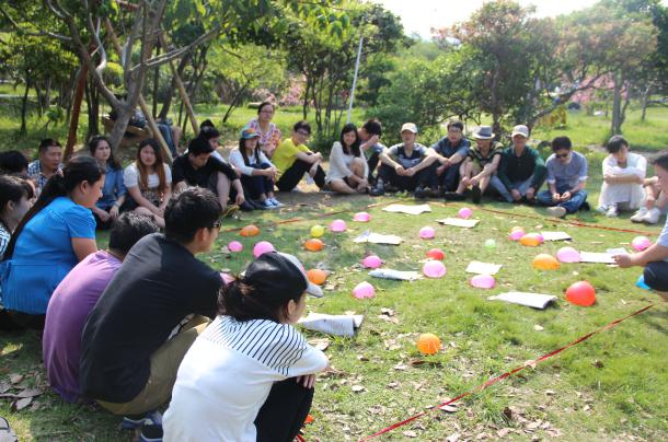 烈日炎炎下,各位梅塞德斯科技的家人們緊緊圍成一個圈坐在草地上,認真的聽李總解說游戲規(guī)則;