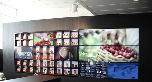總部位于法國巴黎附近的Defocus電影為雀巢瑞士韋威的總部辦公室設(shè)計了一個非常漂亮的雀巢咖啡吧液晶拼接。