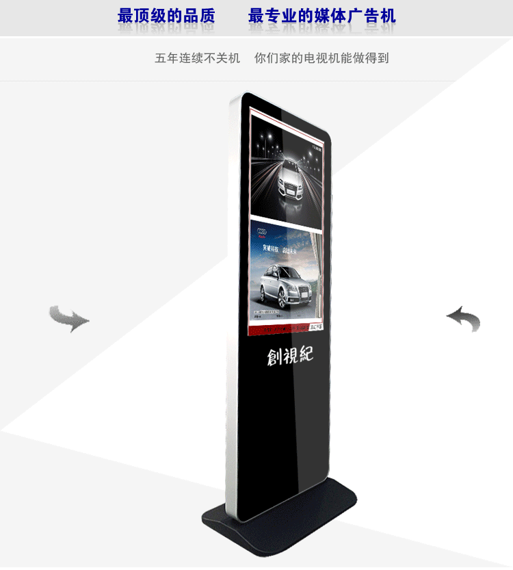 你知道第五大媒體形式是哪一種嗎?有人說繼紙媒、廣播、電視、互聯(lián)網(wǎng)后,數(shù)字標(biāo)牌被認(rèn)為是第五大媒體形式,而剛剛到來的2015更被認(rèn)為是數(shù)字標(biāo)牌元年。近幾年來,創(chuàng)視紀(jì)數(shù)字標(biāo)牌得到迅速發(fā)展,從最初的展示信息,到單機(jī)廣告機(jī)、聯(lián)網(wǎng)化的廣告機(jī)再到人機(jī)交互系統(tǒng),創(chuàng)視紀(jì)數(shù)數(shù)字標(biāo)牌在互聯(lián)網(wǎng)化、數(shù)字化的時代得到迅速發(fā)展,并由于其自身的特性得到市場的肯定已經(jīng)受眾的歡迎。