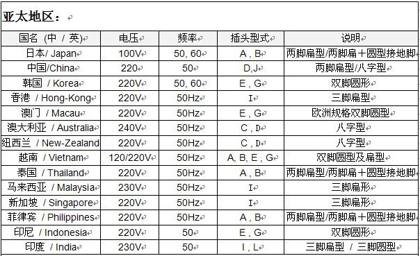 圖一(核心提示: 世界各國(地區(qū))插頭型式說明