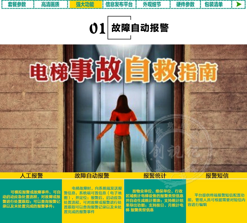 創(chuàng)視紀(jì)推出的電梯智慧電梯數(shù)字標(biāo)牌解決方案支持動態(tài)多媒體內(nèi)容顯示,觸控式人機(jī)交互,可遠(yuǎn)程/集中管理,包括人臉識別、實(shí)時數(shù)據(jù)分析、感知計(jì)算等新興技術(shù)也被運(yùn)用到方案之中,將安全監(jiān)控功能與商業(yè)廣告功能相結(jié)合,通過對電梯的遠(yuǎn)程監(jiān)控實(shí)現(xiàn)電梯的安全運(yùn)行,防范電梯事故的發(fā)生,同時利用這個新媒體平臺做公益性和商業(yè)性廣告,獲得合理的投資回報(bào),有利于電梯物聯(lián)網(wǎng)安全監(jiān)控系統(tǒng)的長久的運(yùn)營和維護(hù),實(shí)現(xiàn)安全性、公益性、商業(yè)運(yùn)營的有機(jī)結(jié)合。